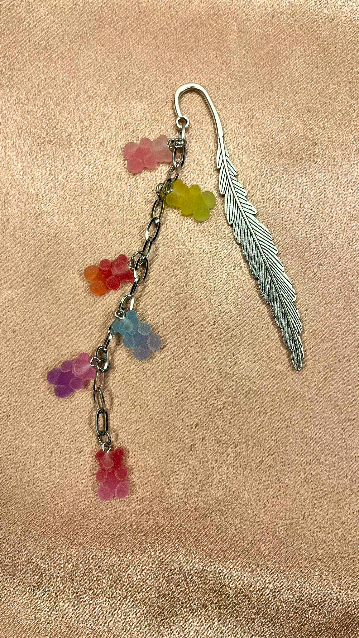 Versierd met schattige beertjes in pastel snoepkleuren — deze handgemaakte boekenlegger is het perfecte cadeautje voor jezelf of een mede-boekenliefhebber met een zoete kant.